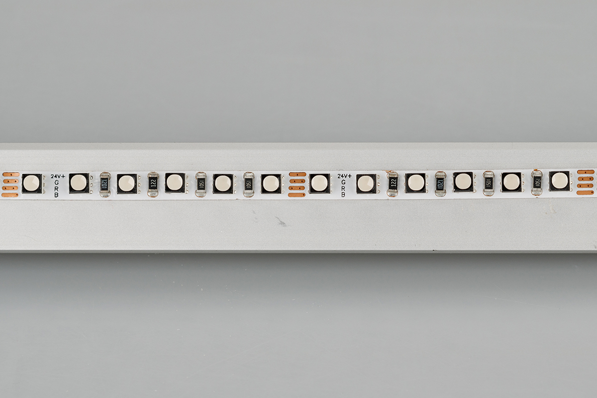 Гибкая лента LUX, светодиоды smd 3535, 120шт/м (600шт на 5м), узкая плата 5мм, скотч 3М. Цвет RGB. Питание 24V, мощность 8 Вт/м (40 Вт на 5м), угол 120°. Размеры 5000х5x3.3мм. Мин.отрезок 50мм, 6 шт светодиодов. Пакет 5м. Цена за 1м. Рекомендуется установка на профиль.