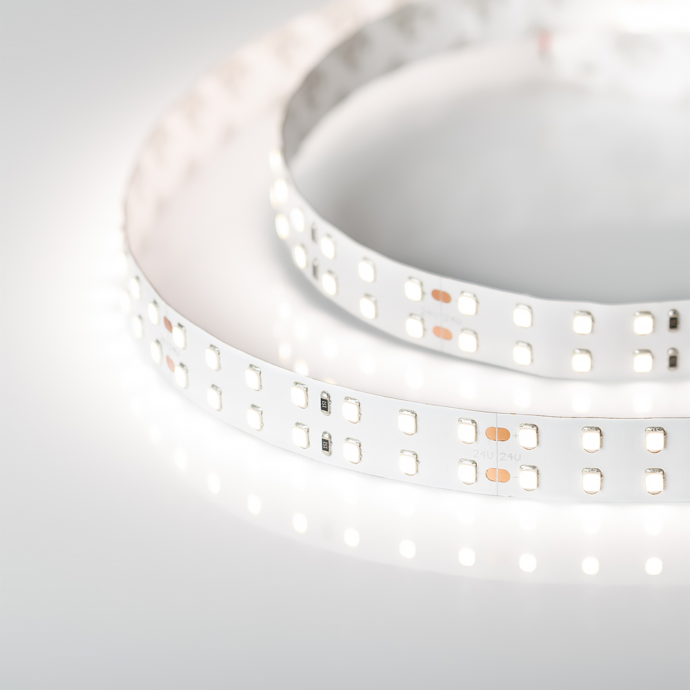 Гибкая лента LUX, светодиоды smd 2835, 196 шт/м (980шт на 5м), белая плата 15 мм, скотч 3М. Цвет ДНЕВНОЙ 3800-4200K. Питание 24V, мощность 20 Вт/м (100 Вт на 5м), угол 120°, цветопередача CRI 95..98. Размеры 5000х15x1.5мм. Мин.отрезок 71.43мм, 14 светодиодов. Цена за 1м.