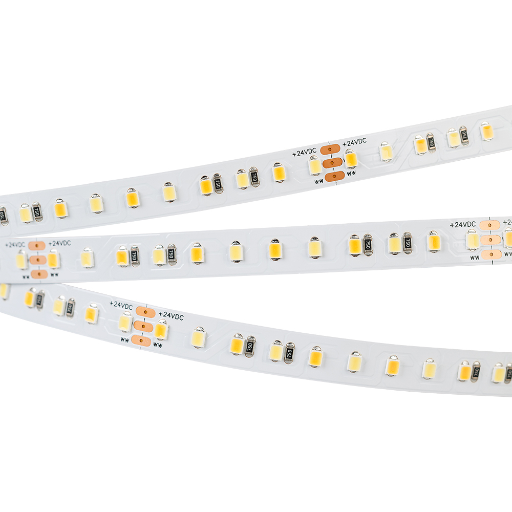 2-х канальная лента LUX с изменяемой цв.температурой, светодиоды smd 2835, 120шт/м (600шт на 5м), белая плата 10мм, скотч 3М. Два цвета БЕЛЫЙ 6500K + ТЁПЛЫЙ 2700K. Угол 120°, цветопередача CRI>94. Питание 24V, мощность 23 Вт/м (115 Вт на 5м). Размеры 5000х10х1,8мм. Мин.отрезок 100мм, 12 светодиодов. Цена за 1м.
