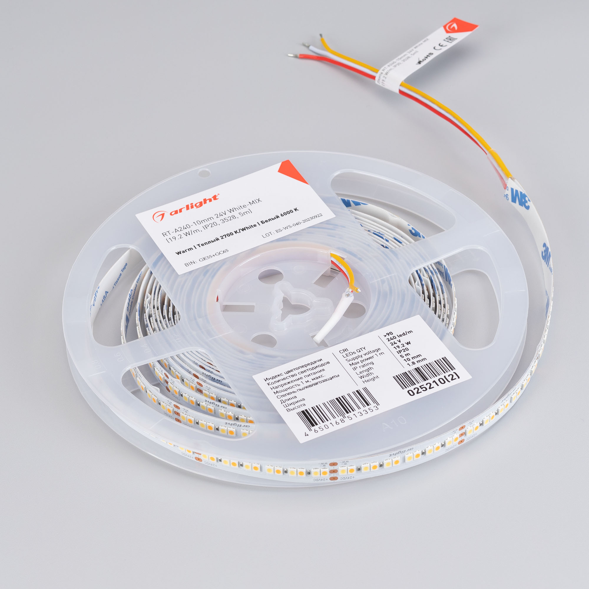Лента RT-A240-10mm 24V White-MIX (19.2 W/m, IP20, 3528, 5m) (Arlight, Изменяемая ЦТ)