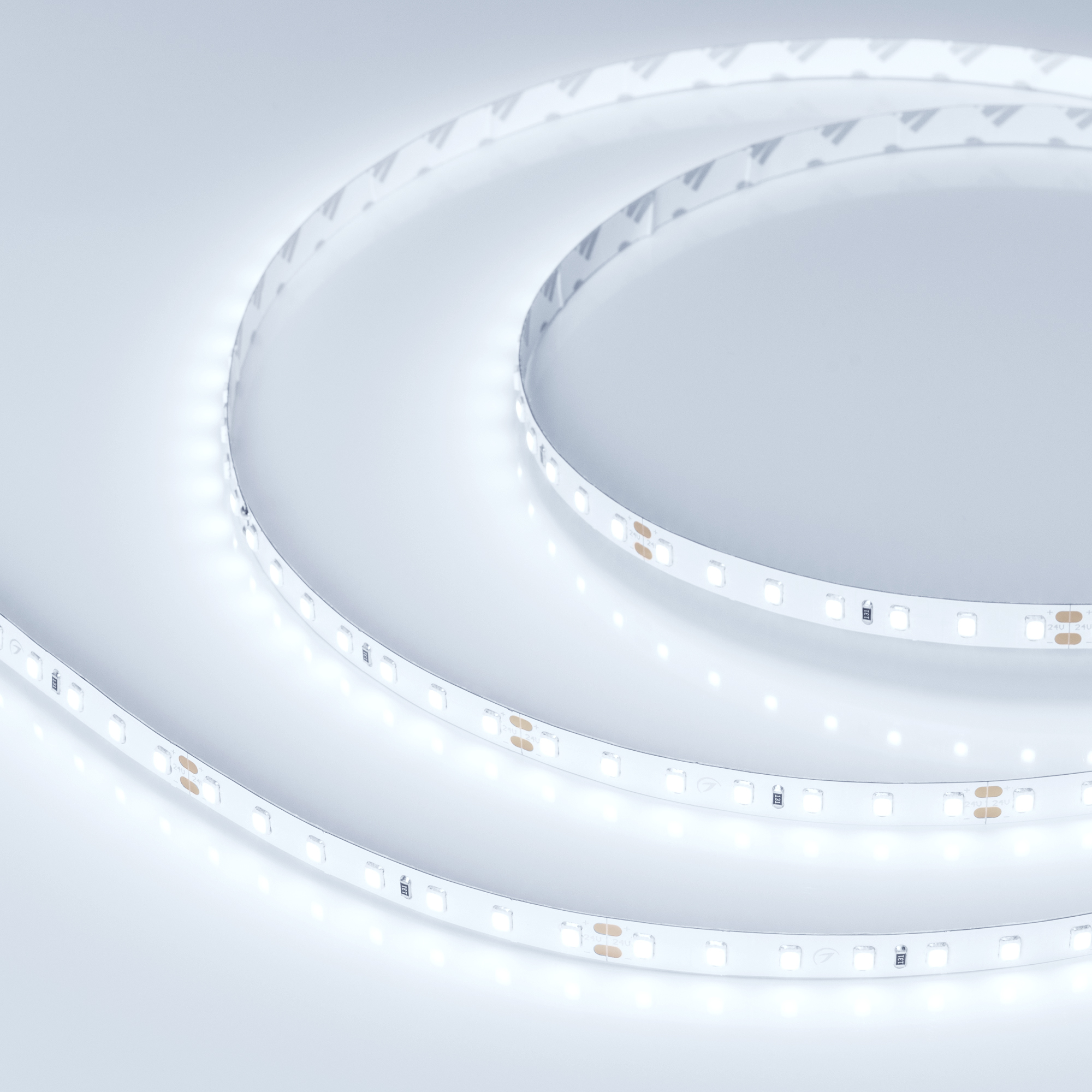 Светодиодная лента RT серии A98. Светодиоды SMD 2835, 98 шт/м, белая плата шириной 8 мм, скотч 3M. Цвет ХОЛОДНЫЙ 8000K, индекс цветопередачи CRI>85, угол 120°. Питание 24 В, мощность 10 Вт/м (50 Вт на 5 м). Размеры 5000x8x1.5 мм. Мин. отрезок 71.43 мм, 7 светодиодов. Цена за 1 м.