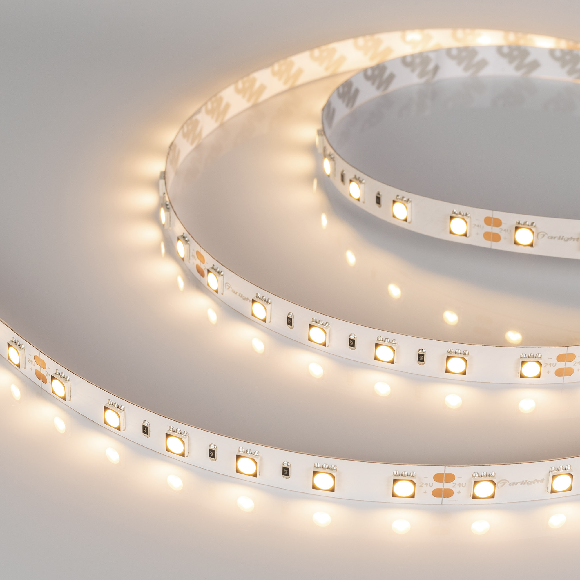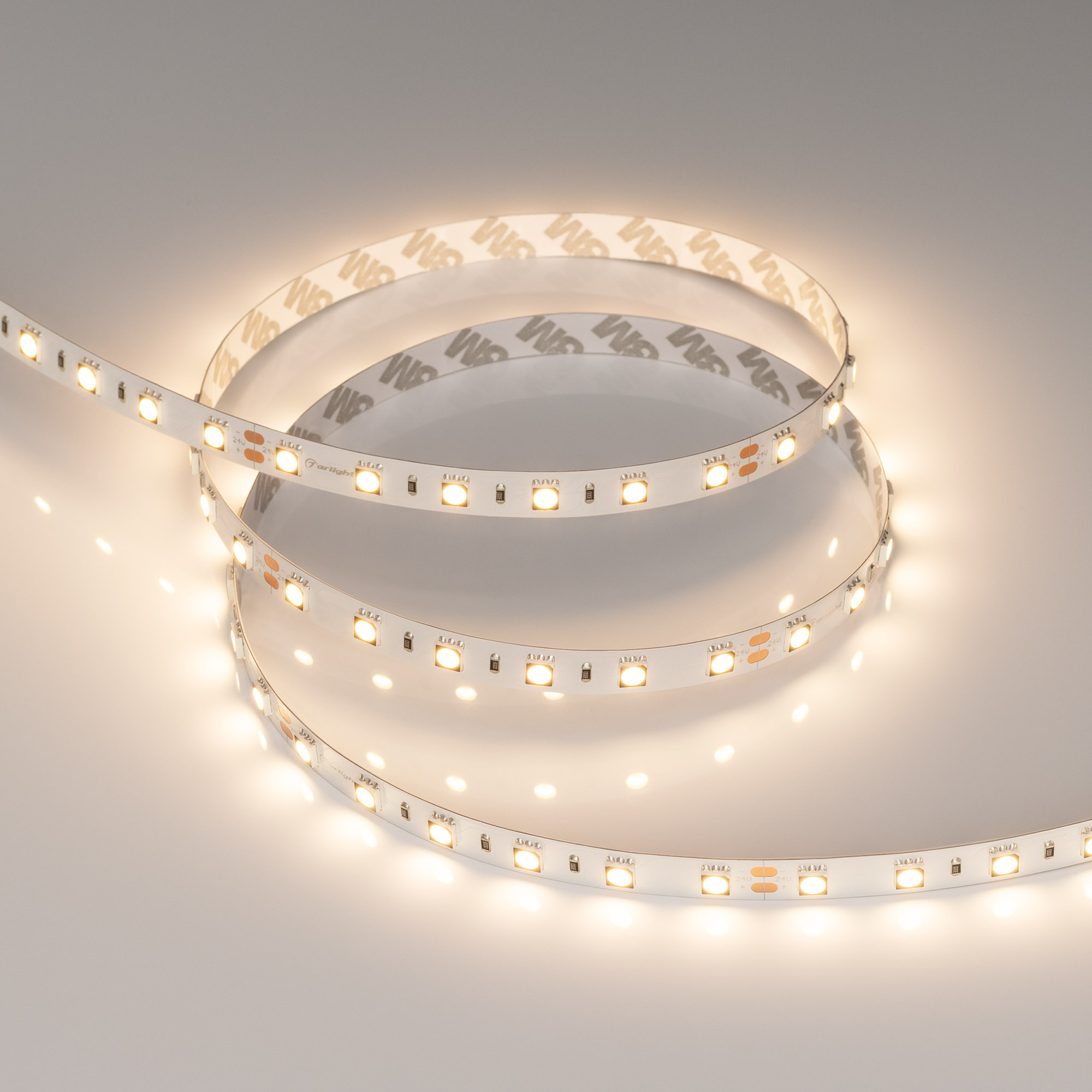Светодиодная лента RT серии B60 с высоким индексом цветопередачи. Светодиоды SMD 5060, 60 шт/м, белая плата шириной 10 мм, скотч 3М. Цвет ТЕПЛЫЙ 3000K, индекс цветопередачи CRI>95...98, угол 120°. Питание 24 В, мощность 14.4 Вт/м (72 Вт на 5 м). Размеры 5000х10х2.2 мм. Мин. отрезок 100 мм, 6 светодиодов. Цена за 1 м.