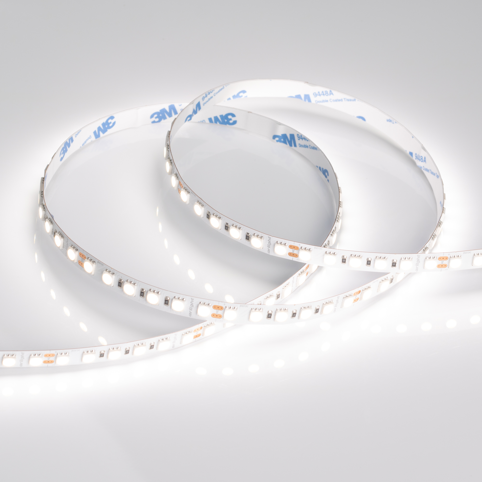 Светодиодная лента RT серии B96. Светодиоды SMD 5060, 96 шт/м, белая плата шириной 10 мм, скотч 3M. Цвет ДНЕВНОЙ 4000K, индекс цветопередачи CRI>90, угол 120°. Питание 24V, мощность 23 Вт/м (115 Вт на 5 м). Размеры 5000x10x2.2 мм. Мин.отрезок 62.5 мм, 6 светодиодов. Цена за 1м.