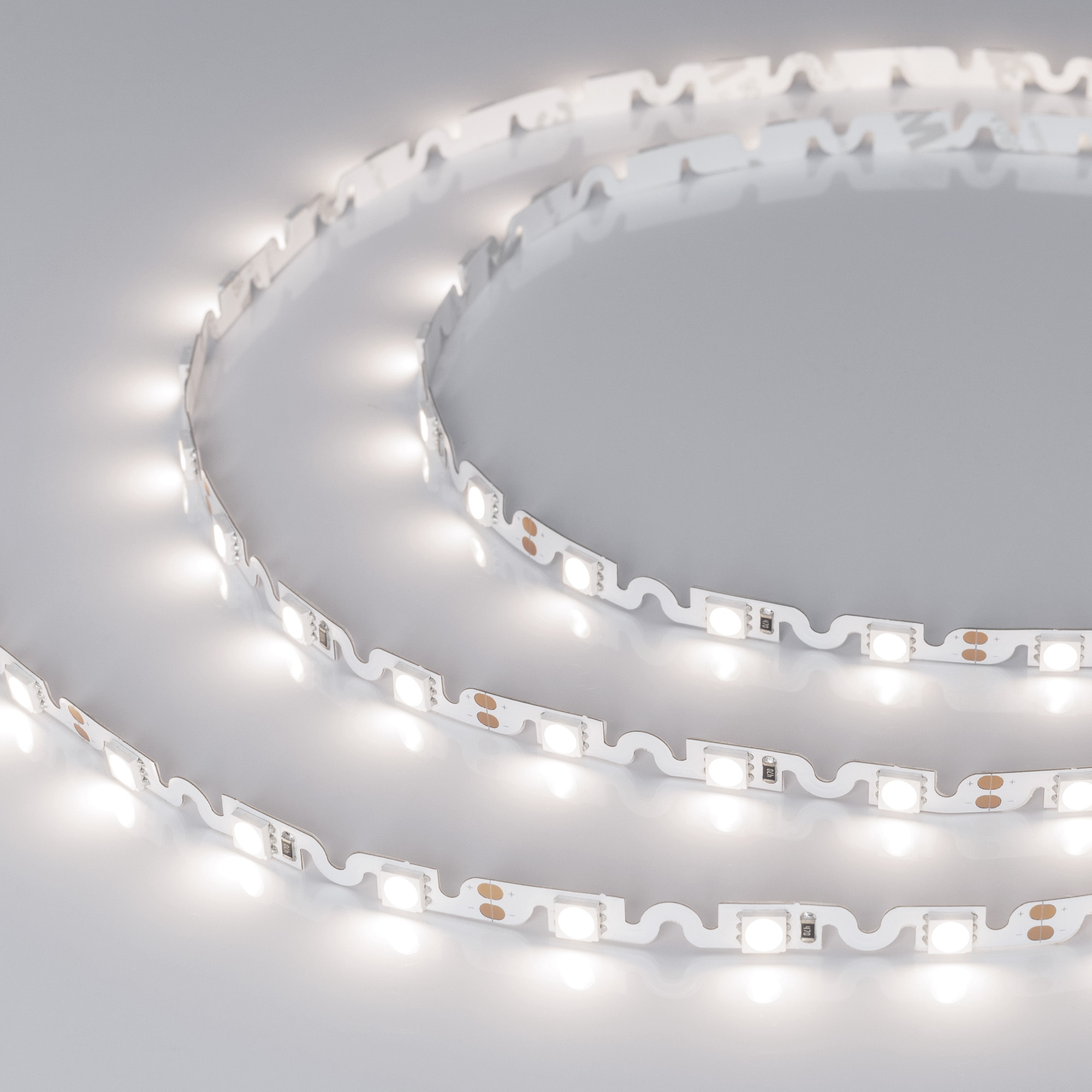 Гибкая лента с фигурной платой в форме волны, легко изгибается на плоскости. Светодиоды smd 5060, 48шт/м (240шт на 5м), белая плата 6.1мм, скотч 3М. Цвет ДНЕВНОЙ 3800-4200K. Питание 12V, мощность 11.5 Вт/м (57.5 Вт на 5м), угол 120°, цветопередача CRI>85. Размеры 5000х6.1х2.2мм. Мин.отрезок 62.5мм, 3 светодиода. Цена за 1м.