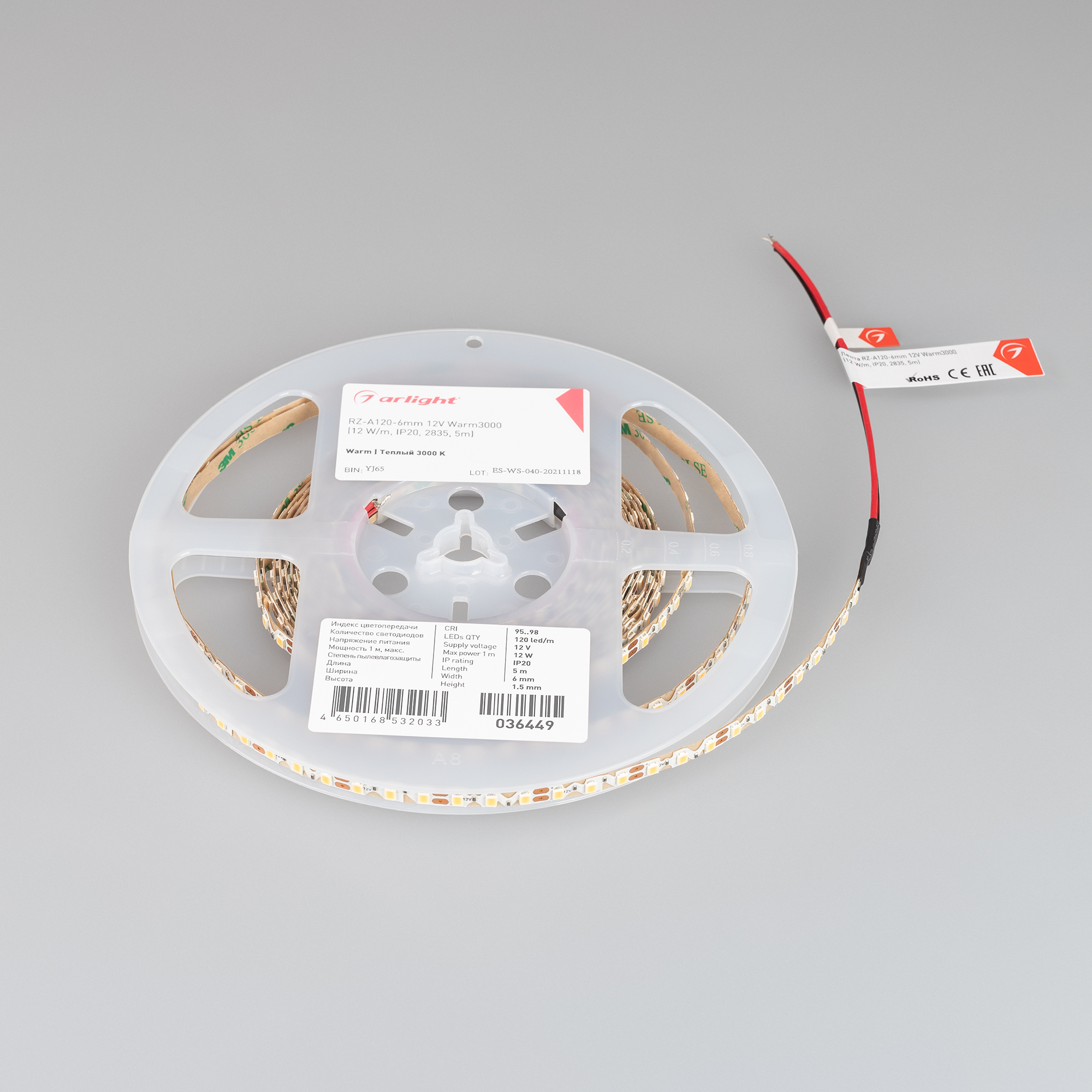 Лента RZ-A120-6mm 12V Warm3000 (12 W/m, IP20, 2835, 5m) (Arlight, 12 Вт/м, IP20)