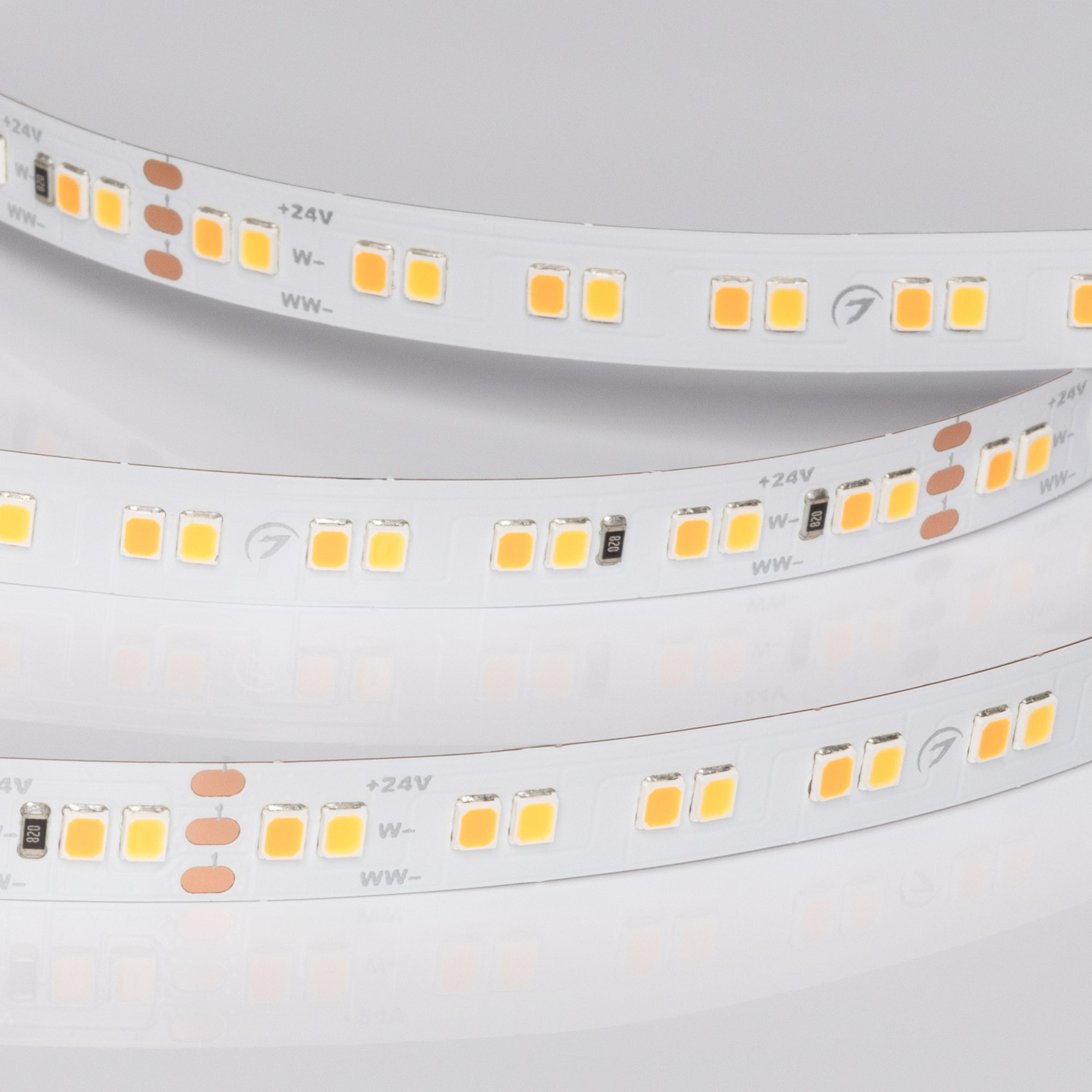 Светодиодная лента UL серии A160, открытая. Светодиоды 2835, 160 шт/м (800 шт на 5 м), белая плата, ширина 10 мм, скотч 3M. Цвет MIX ДНЕВНОЙ 4000 K + ТЁПЛЫЙ 2400 K. Индекс цветопередачи CRI>90, угол 120°. Питание 24В, мощность 12 Вт/м (60 Вт на 5 м). Размеры 5000x10x1.2 мм. Мин. отрезок 100 мм, 16 светодиодов. Цена за 1 м. Рекомендуется установка на профиль.