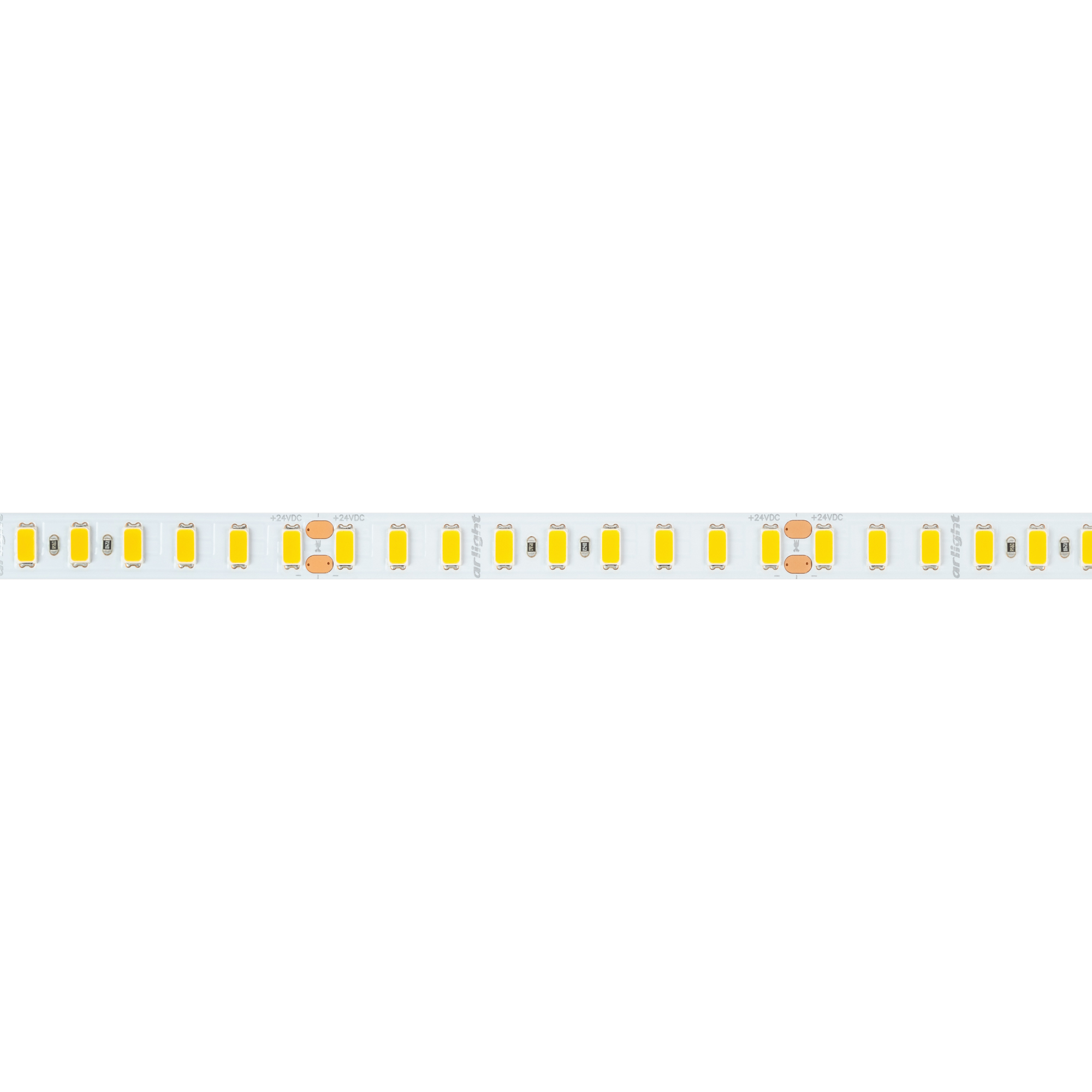 Светодиодная высокоэффективная лента ULTRA серии C126. Светодиоды SMD 5630, 126 шт/м, белая плата шириной 10 мм, скотч 3M. Цвет ТЕПЛЫЙ 2700K, высокая световая эффективность 200 лм/Вт, индекс цветопередачи CRI>80, угол 120°. Питание 24 В, мощность 14.4 Вт/м (72 Вт на 5 м). Размеры 5000x10x1.4 мм. Мин. отрезок 71.4 мм, 9 светодиодов. Цена за 1 м. Рекомендуется установка на профиль.
