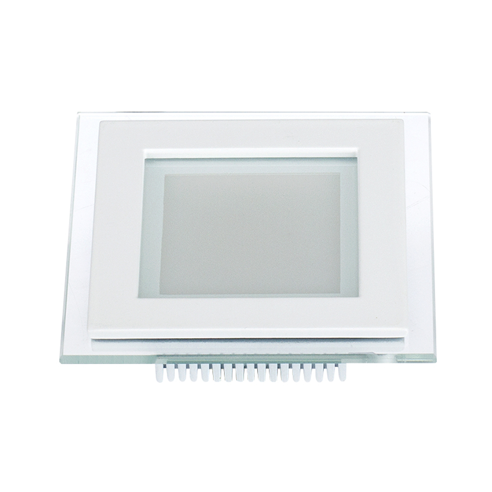 Стеклянная квадратная панель 6Вт / ДНЕВНОЙ 4000-4500K / 430лм / 120°. Размер 96x96x40мм (в отверстие 75x75мм). Корпус белый. Питание от сети 230VAC, драйвер в комлекте 300mA 15-25V. Диапазон рабочих температур -10°..+40°C. Для помещений.