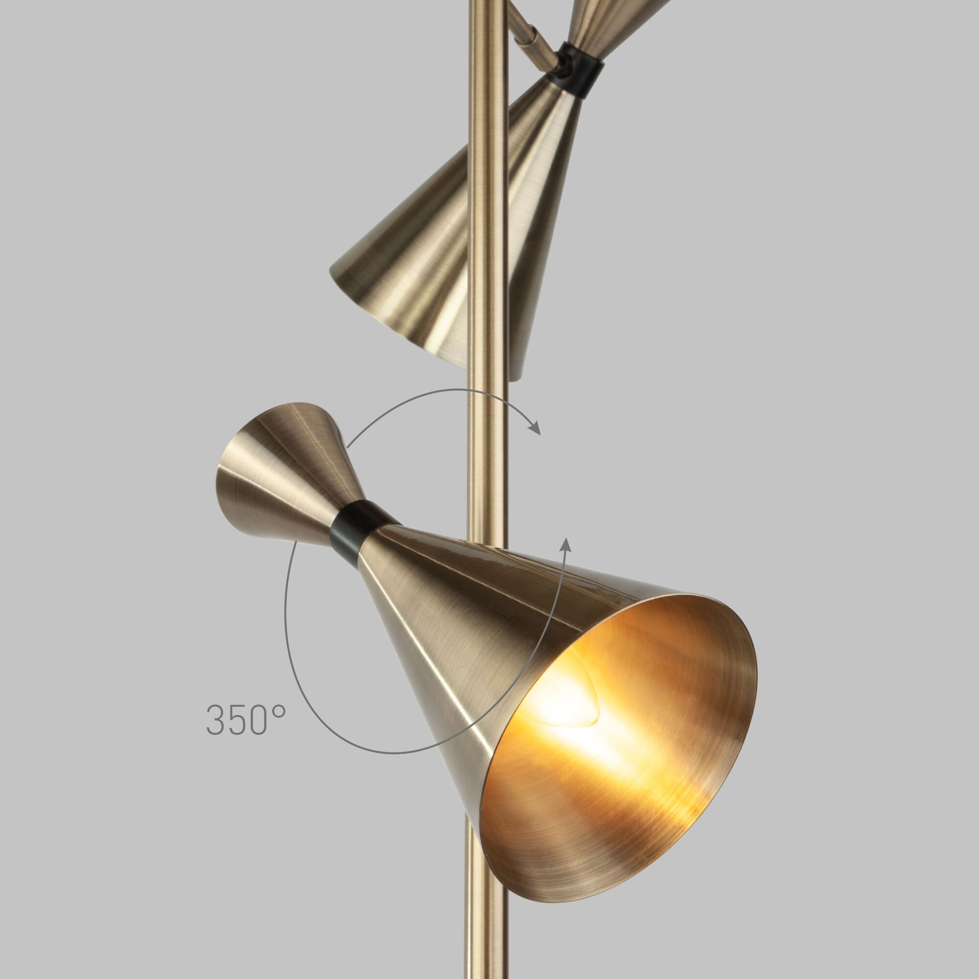 Благодаря металлическим плафонам напольный светильник создает мягкое рассеянное свечение, подходящее для комфортного чтения книг в вечернее время. Прочный металлический корпус светильника устойчив к механическим воздействиям, а защитное покрытие обеспечивает надежную электроизоляцию и презентабельный внешний вид.