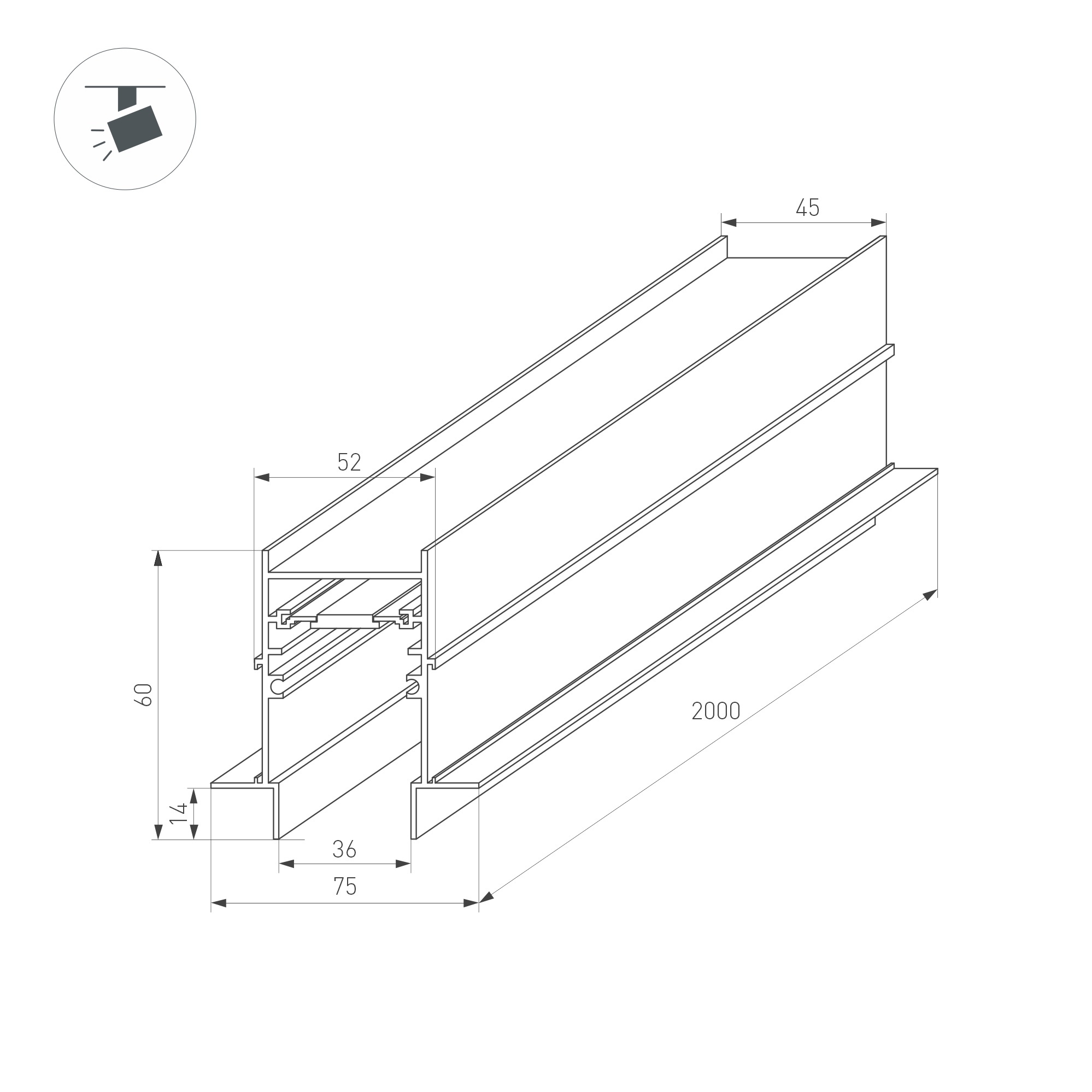 Трек встраиваемый MAG-TRACK-4560-FDW-2000 (BK) (Arlight, IP20 Металл, 5 лет)