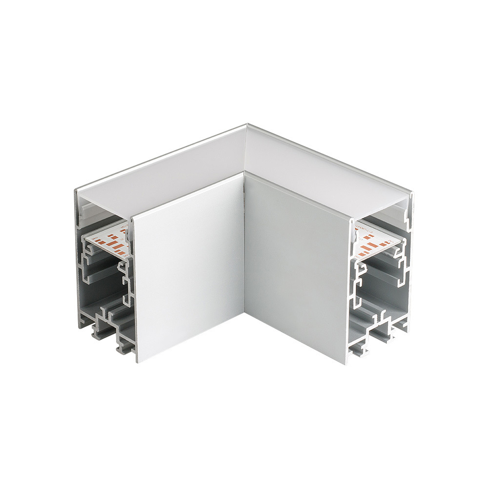 Прямой угол в сборе для соединения 2-х профилей S2-LINE-4067 под прямым углом 90°. Экран образует линию на плоскости. В комплекте матовый экран, площадка для ленты, соединители. Длина внешней стороны угла 100мм.
