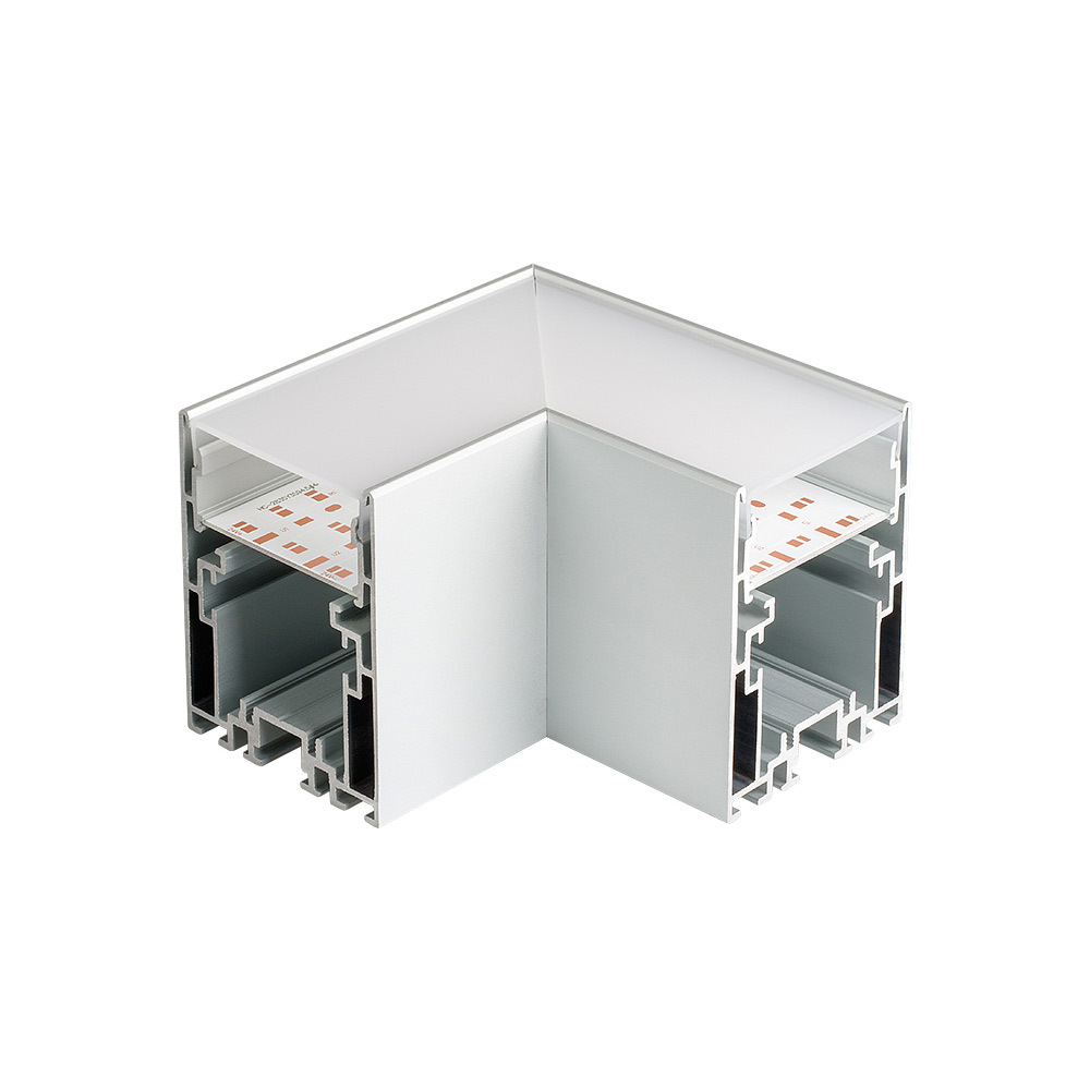 Прямой угол в сборе для соединения 2-х профилей S2-LINE-5470 под прямым углом 90°. Экран образует линию на плоскости. В комплекте матовый экран, площадка для ленты, соединители. Длина внешней стороны угла 100мм.