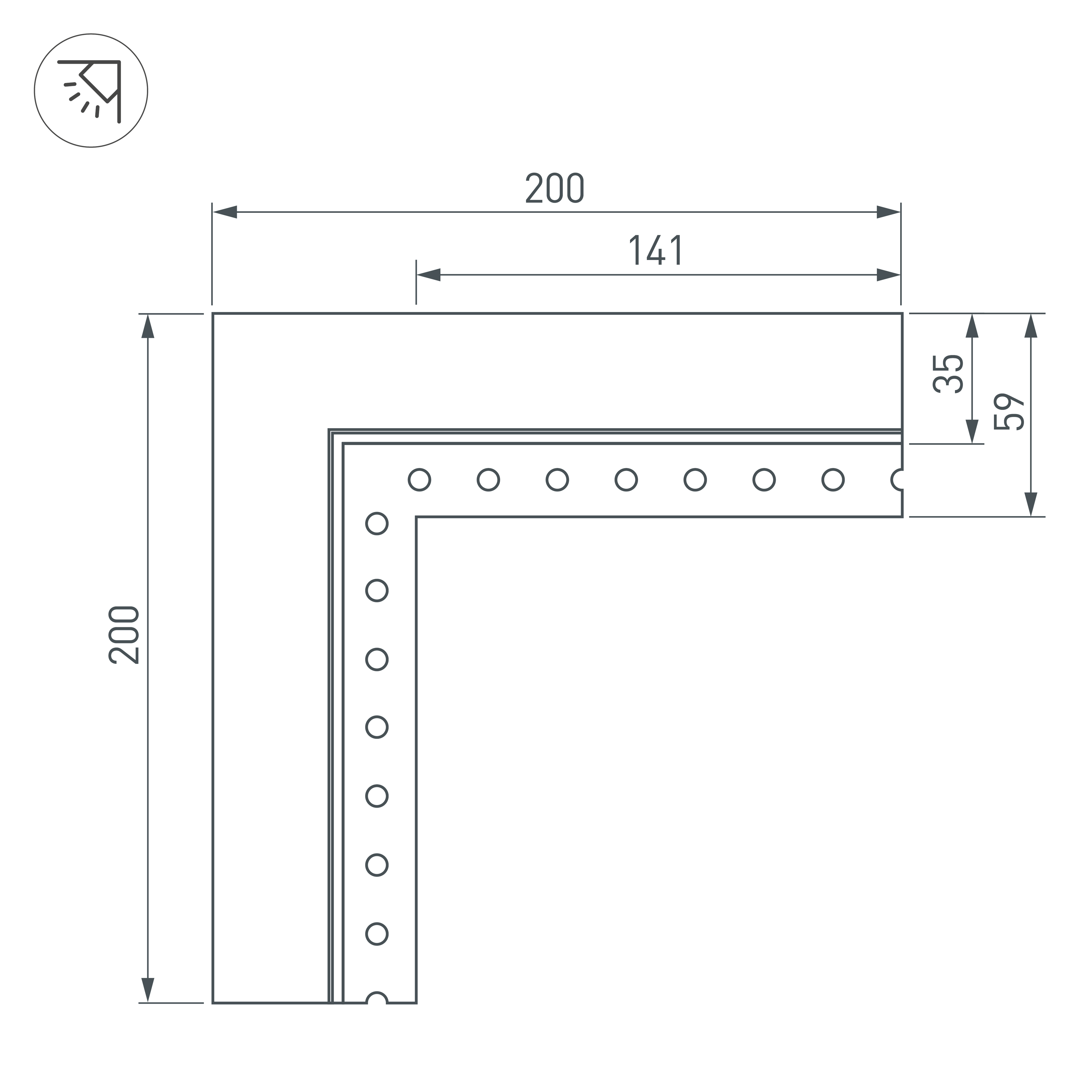 Угол в сборе, для профиля SL-LINIA32-FANTOM-EDGE. Свечение внутрь. В комплекте угол с экраном, соединители, винты, шестигранный ключ.