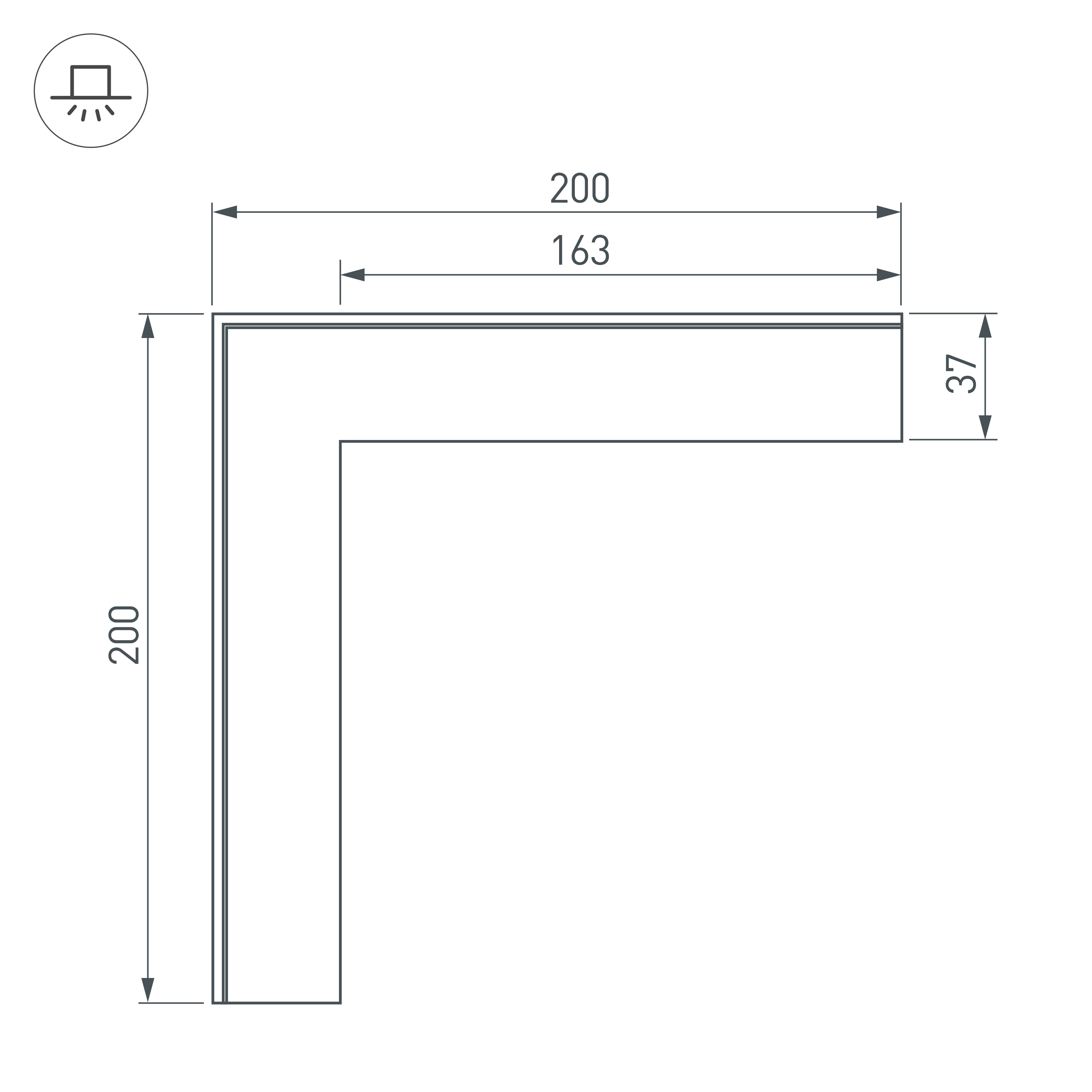 Угол в сборе, для профиля SL-LINIA45-FANTOM. Свечение наружу. В комплекте угол с экраном, соединители, винты, шестигранный ключ.