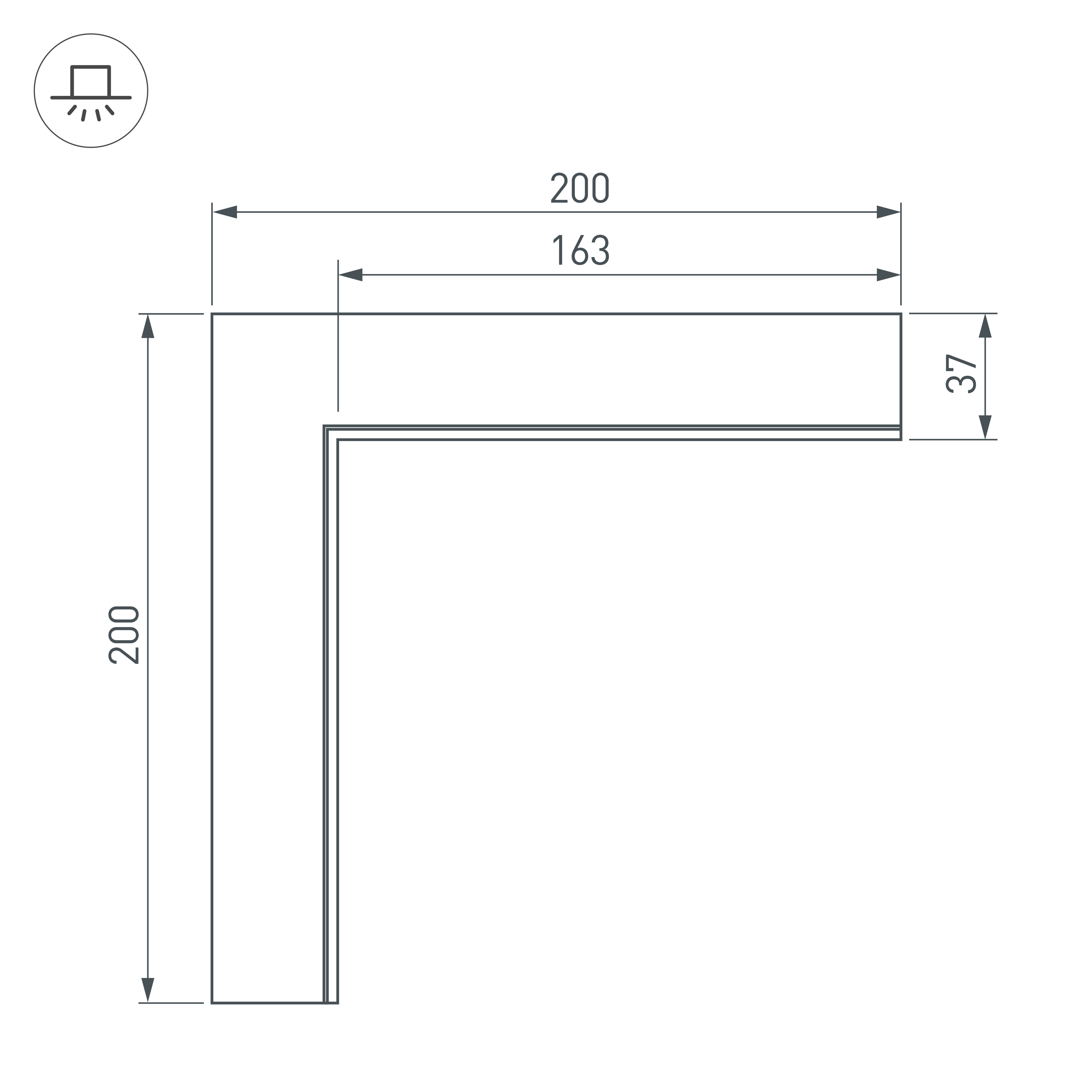 Угол в сборе, для профиля SL-LINIA45-FANTOM. Свечение внутрь. В комплекте угол с экраном, соединители, винты, шестигранный ключ.