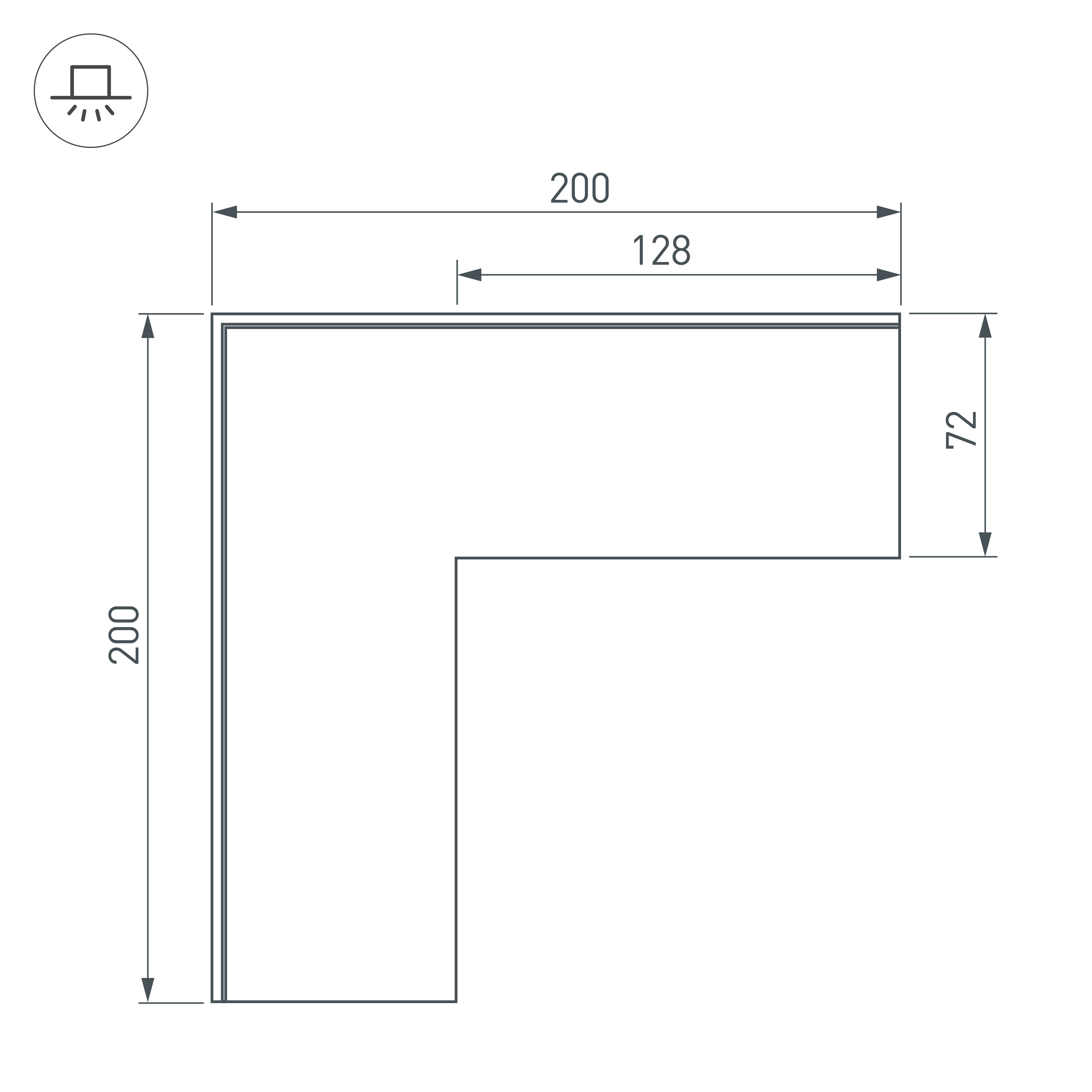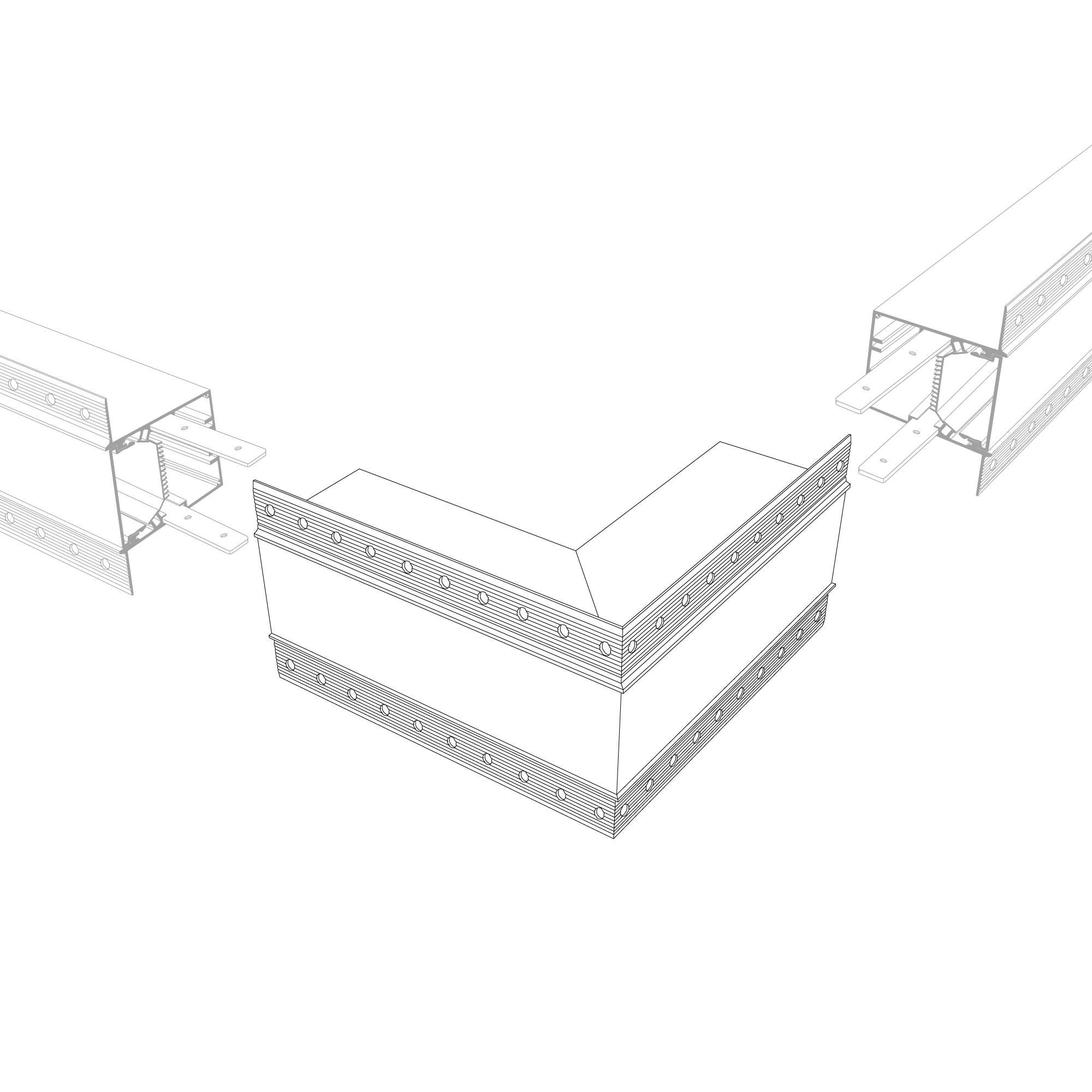 Угол в сборе, для профиля SL-LINIA55-FANTOM. Свечение наружу. В комплекте угол с экраном, соединители, винты, шестигранный ключ.