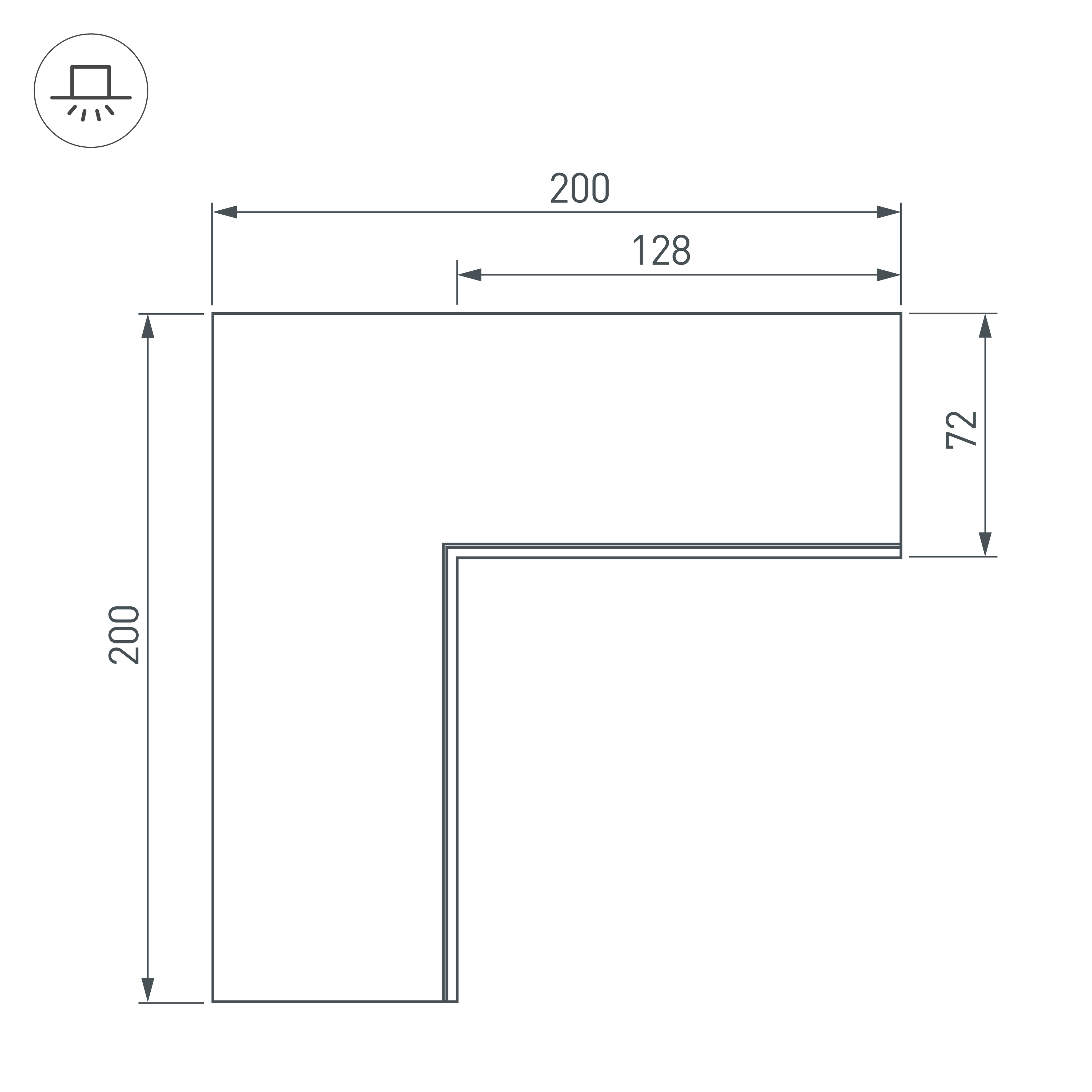 Угол в сборе, для профиля SL-LINIA55-FANTOM. Свечение внутрь. В комплекте угол с экраном, соединители, винты, шестигранный ключ.