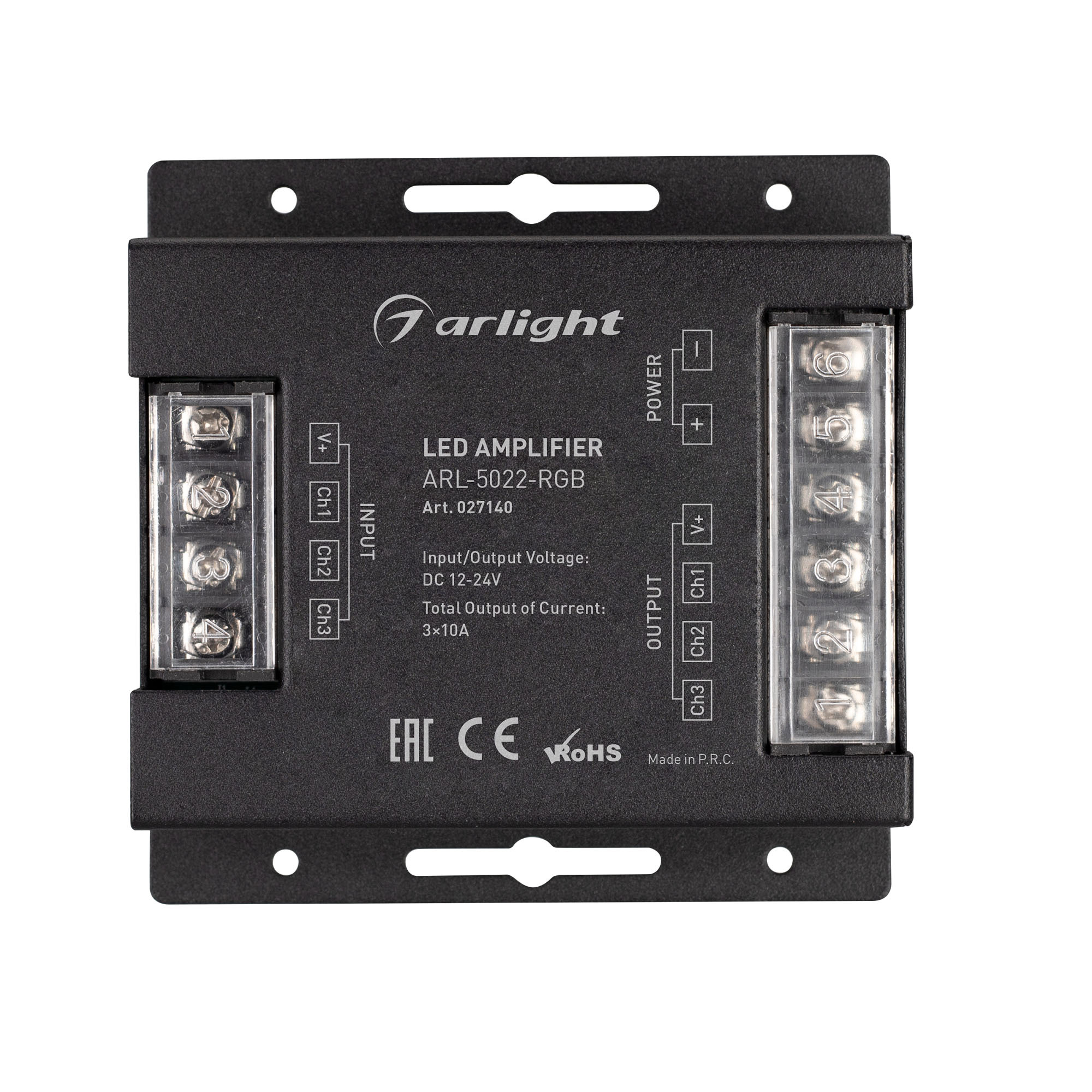 Усилитель ARL-5022-RGB (12-24V, 3x10A, 360-720W) (Arlight, IP20 Металл, 3 года)