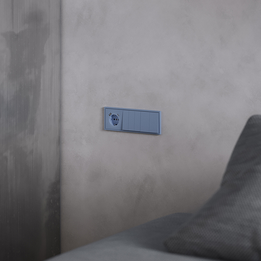 VLS001015 Накладка для розетки с заземлением и защитными шторками, с USB A+C, S70 (деним). (ТМ Maytoni)