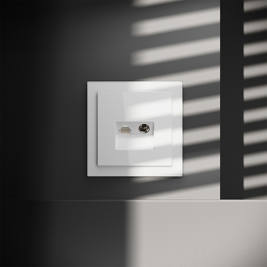 VLS060701 Розетка телевизионная встраиваемая VOLTUM S70 TV+RJ45 кат. 6, (белый глянцевый). (ТМ Maytoni)