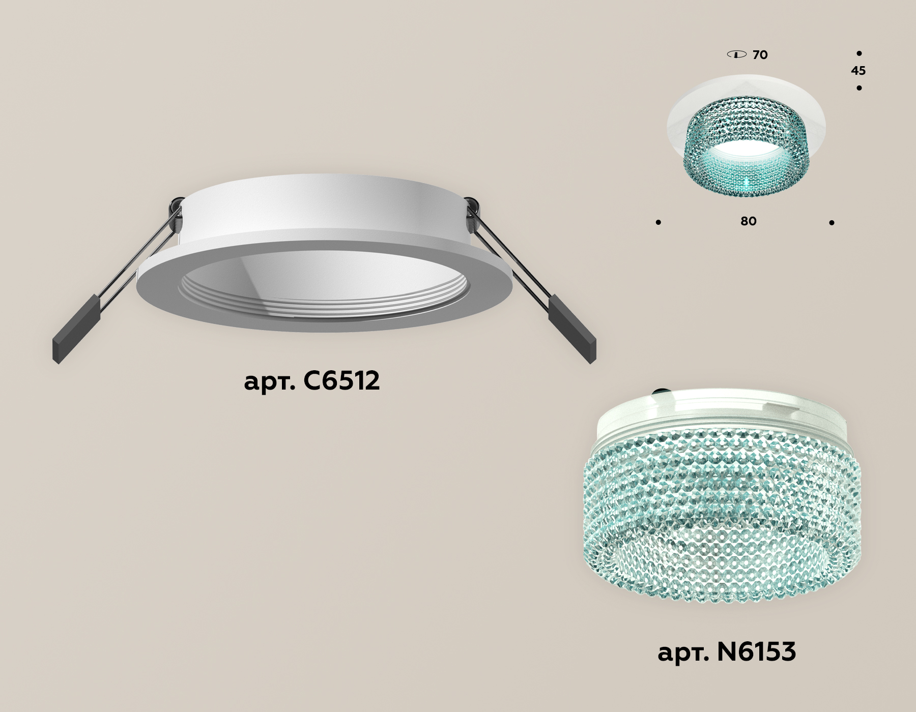 Комплект встраиваемого светильника с композитным хрусталем XC6512043 SWH/BL белый песок/голубой MR16 GU5.3 (C6512, N6153)