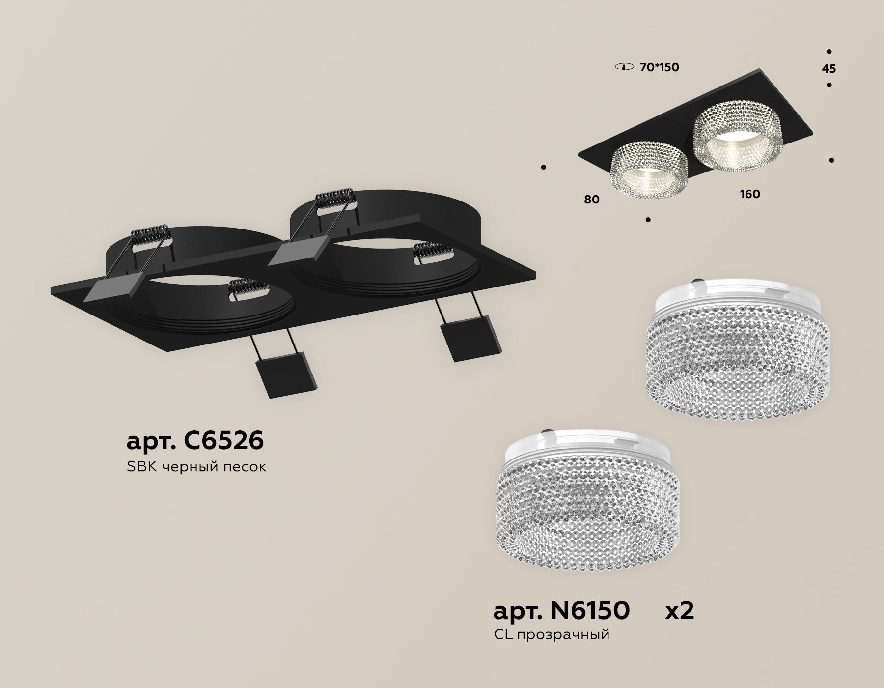встраиваемый корпус 160*80 (цоколь GU5.3 в комплекте), насадка передняя D60 (2шт)