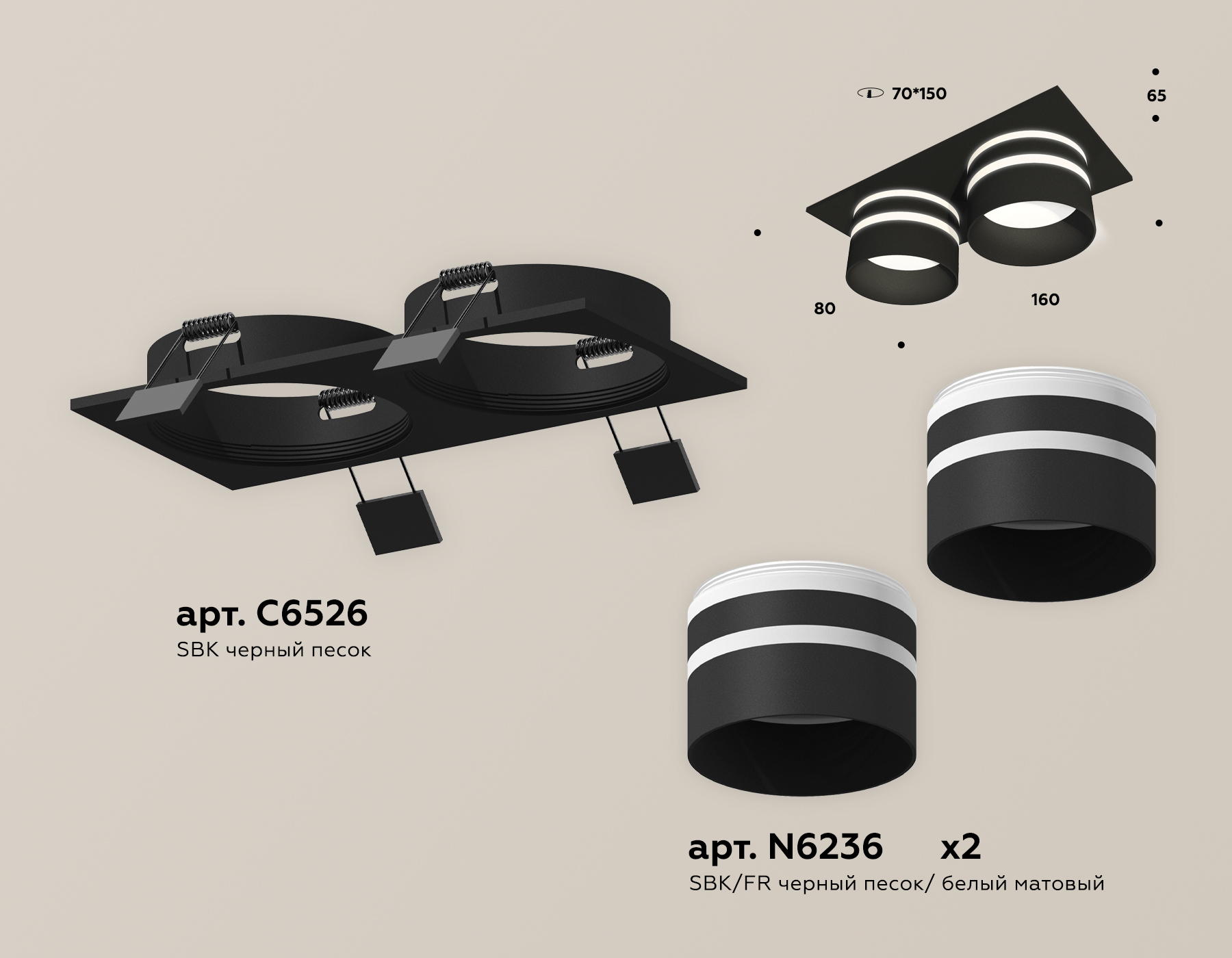 Комплект встраиваемого светильника с акрилом XC6526062 SBK/FR черный песок/белый матовый MR16 GU5.3 (C6526, N6236)