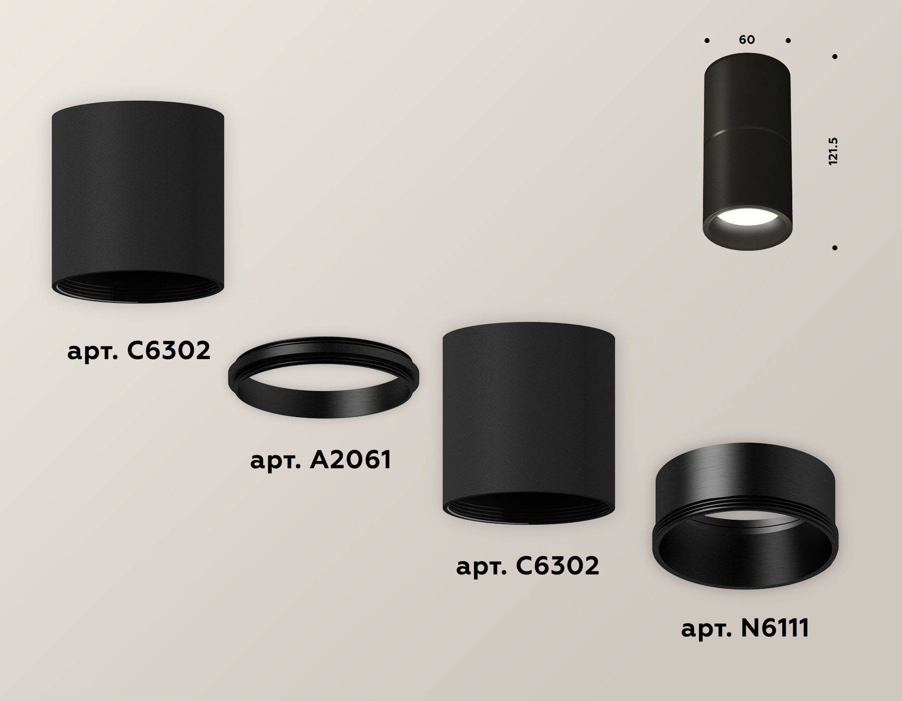 Комплект накладного светильника XS6302080 SBK/PBK черный песок/черный полированный MR16 GU5.3 (C6302, A2061, N6111)