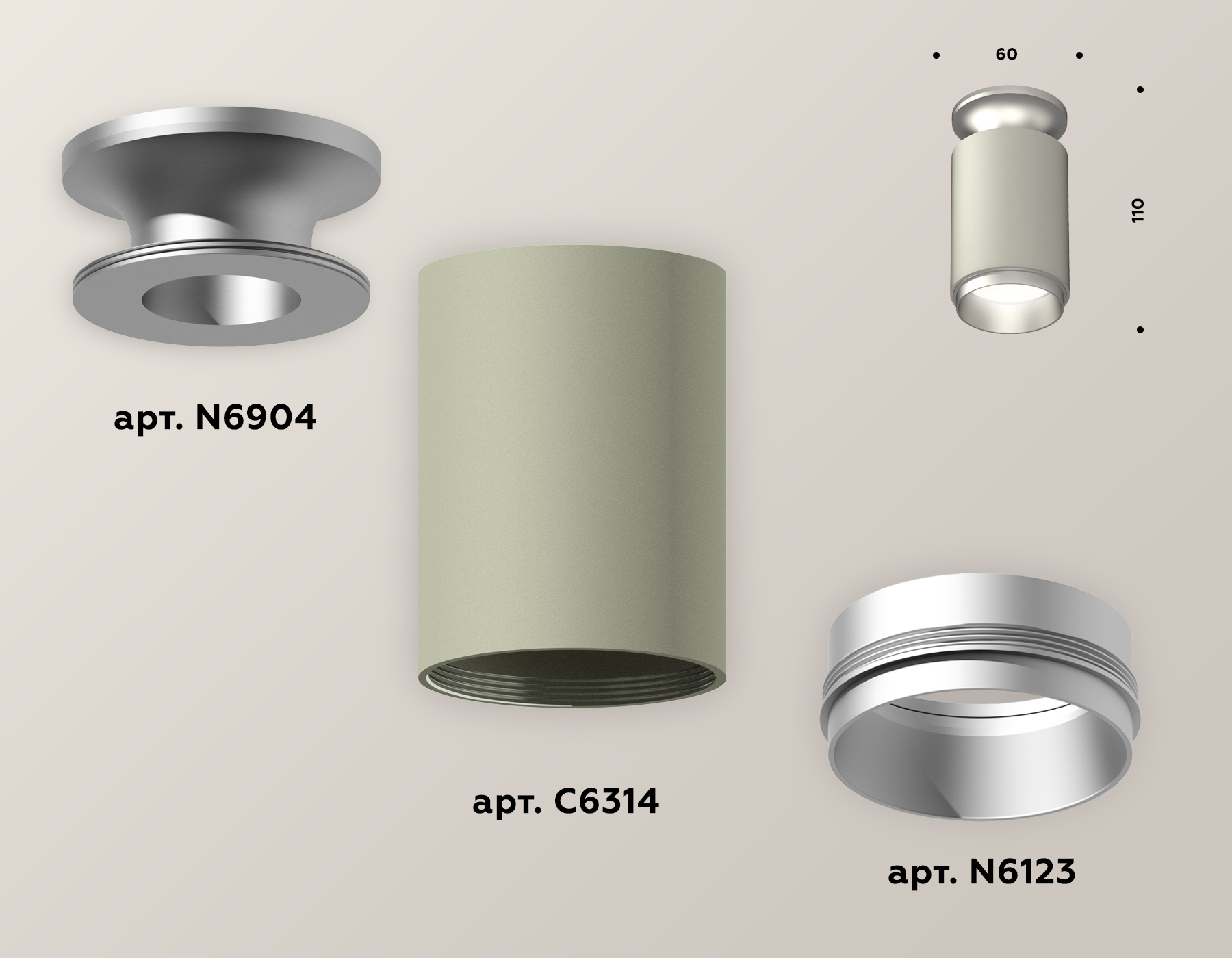 Комплект накладного светильника XS6314120 SGR/MCH серый песок/серебро полированное MR16 GU5.3 (N6904, C6314, N6123)