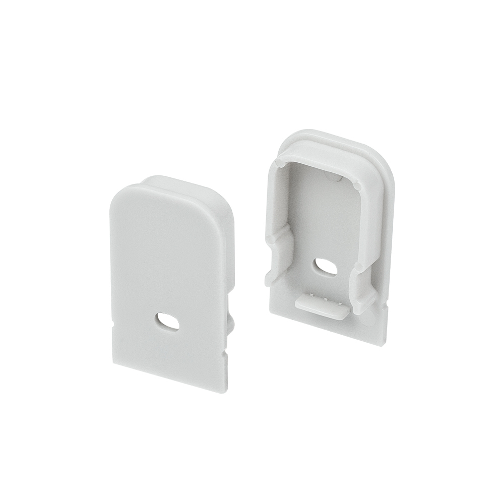Заглушка (с отверстием) для профиля ARH-WIDE-H20 с экраном RRC (прямоугольный скругленный). Материал PVC серый.