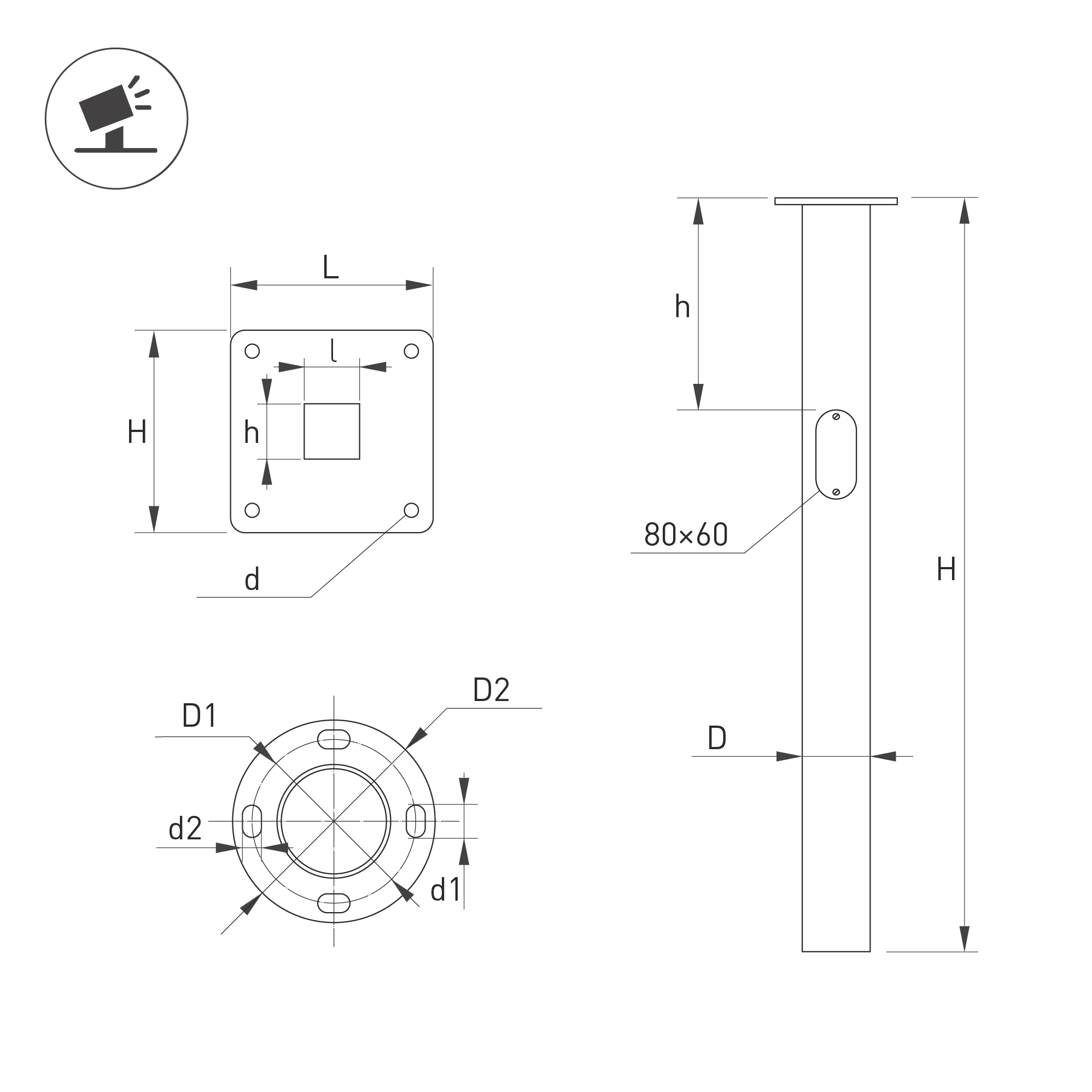Закладная деталь фундамента EP1 Ø108 мм, высота 2000 мм. Толщина стенки - 3-3,5 мм. Материал ЗДФ - сталь. Окрашена порошковой краской в черный цвет. Предусмотрено отверстие для подвода питающего кабеля 80х60 мм.