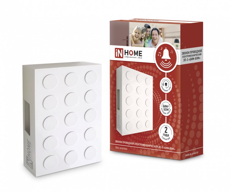 Звонок проводной электромех. ЗП-3 Бим-Бом бел. IN HOME 4690612013268